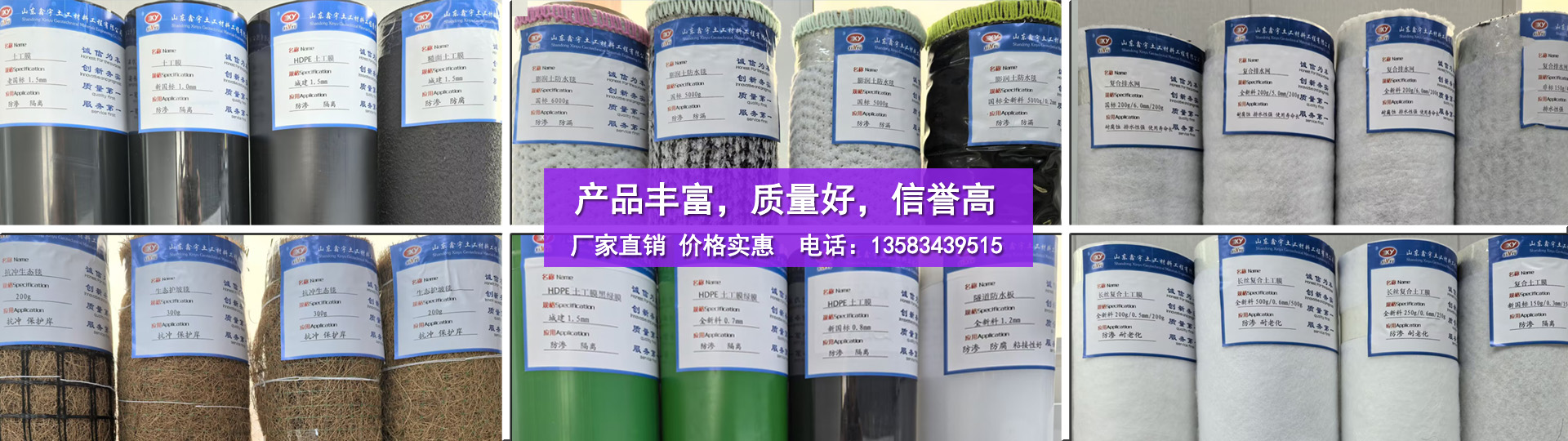 山東鑫宇土工材料工程有限公司生產:土工布,防滲土工膜,膨潤土防水毯,排水板,生態(tài)袋,土工格柵等產品,價格實惠,歡迎來我司參觀訂購